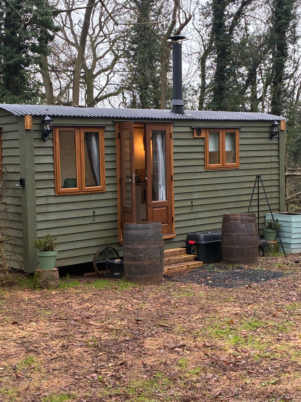 Cosy Shepherds Hut with Wood-Fired Hot Tub