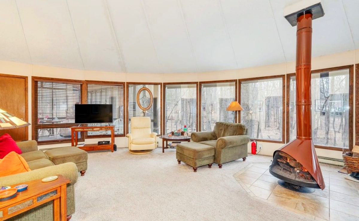 Experience this unique, authentic 1977 round cabin with amazing views from the curved wall of windows. Work from home with fast internet or unplug and simply relax in peaceful awe of the view. Located in The Woods resort, with 2 beautiful outdoor pools (open Memorial Day through Labor Day), large Sports Center (indoor pool), pickleball, tennis & golf! 25 minutes from Berkeley Springs with its famous hot springs, art center, and shops. Hiking, biking, river floats, horseback riding all nearby.