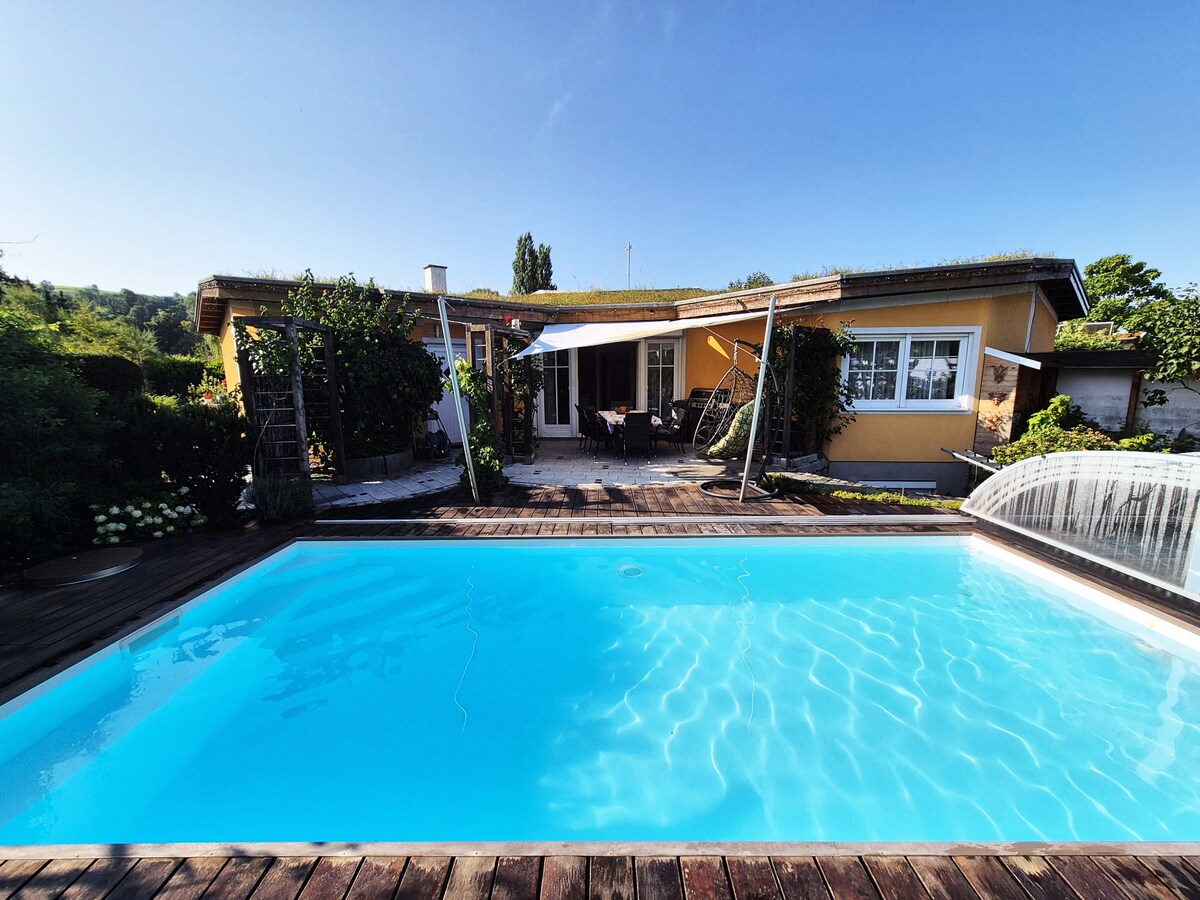 Your Private Summer Retreat in Upper Austria This spacious villa offers the perfect combination of luxury, tranquility and nature: nestled on a large, fenced property, you and your loved ones will enjoy absolute privacy – ideal for guests with pets. The 12-meter-long pool with an outdoor shower, surrounded by a stylish terrace with a cozy seating area and awning, invites you to linger. Perfect for relaxed summer days and balmy barbecue evenings at the BBQ station.