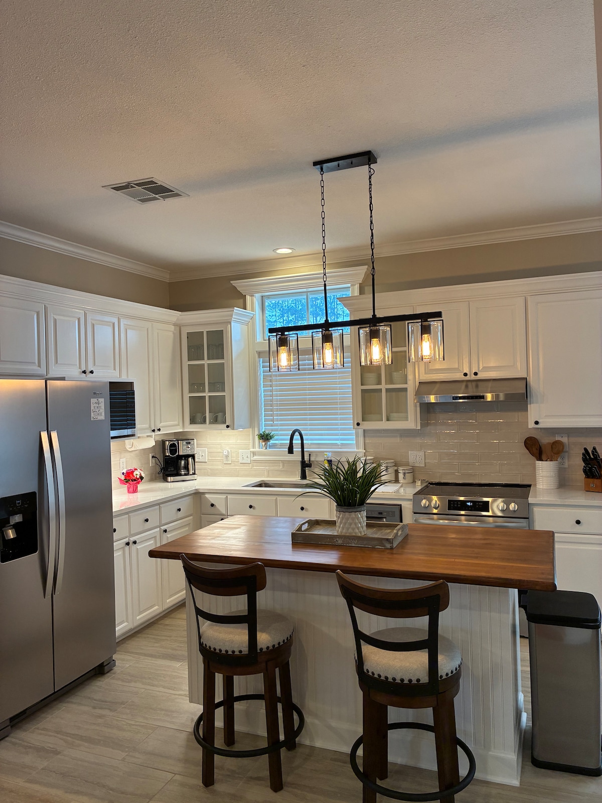Make yourself at home with this newly built family-friendly 3 bedroom Lake Charles Retreat. This welcoming home features 2 queen, 2 twin bed, an air mattress and 2 bathroom. Located just 3 miles from restaurants, fine dining, shopping, entertainment, live music and casinos. Guest can enjoy a comfortable open living room with an infinity table for the family to play games. Amenities are WiFi, AC, iron, and washing machines. No parties, no events, no smoking or vaping inside.