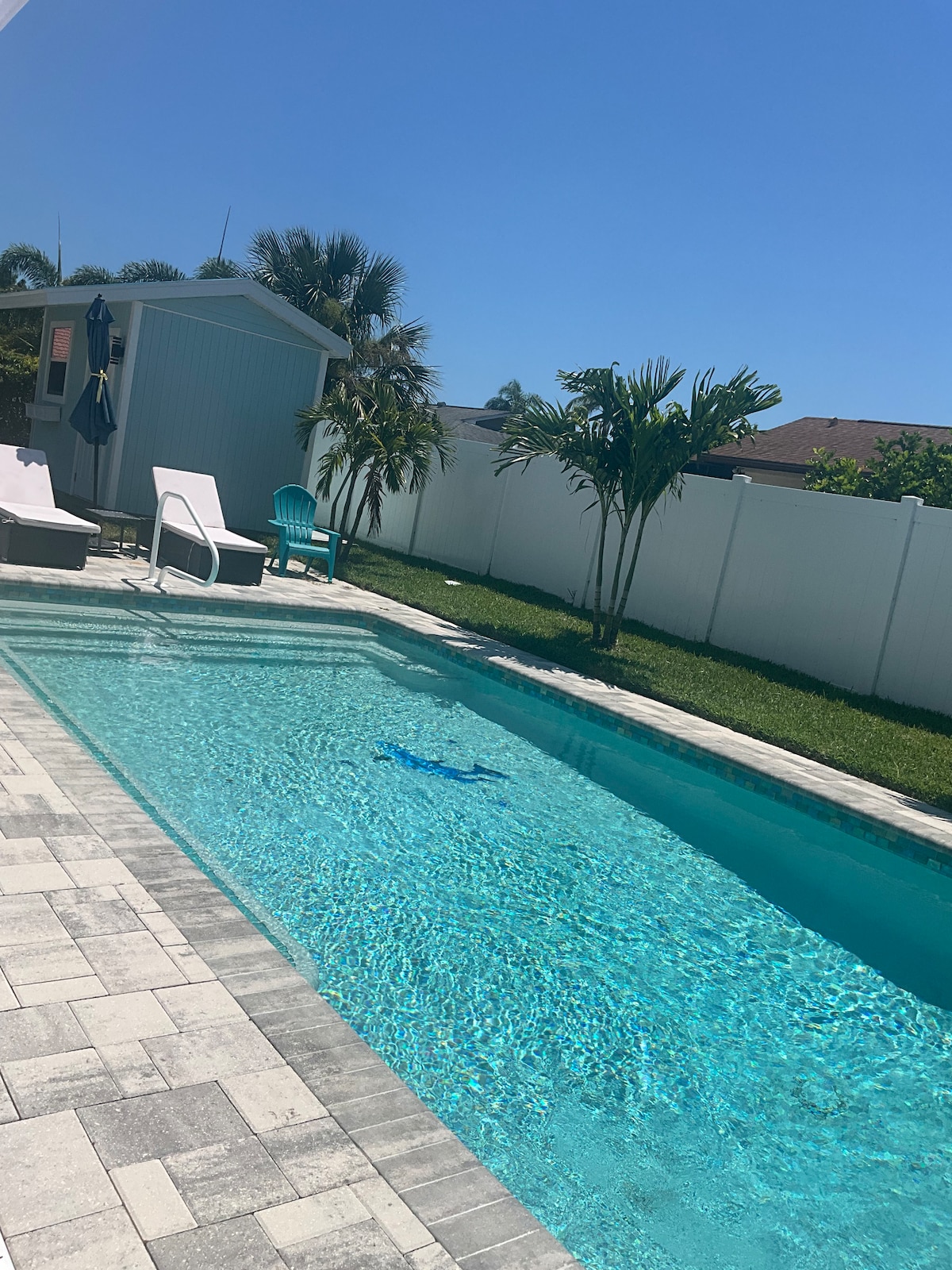 Enjoy Florida sun in a stunning, newly renovated 4/2 pool home! We have provided almost everything we could think of including five 4k TVs w/ Netflix and cable, wifi, heated (optional) salt water pool w/ 7' privacy fencing, adult bikes, beach gear, Pack & Play, office, board games, relaxing lounge chairs, stocked kitchen, washer & dryer, garage parking, dog crate, all in a quiet and safe neighborhood. Oh, and of course it's just 5 miles to world renowned beaches.