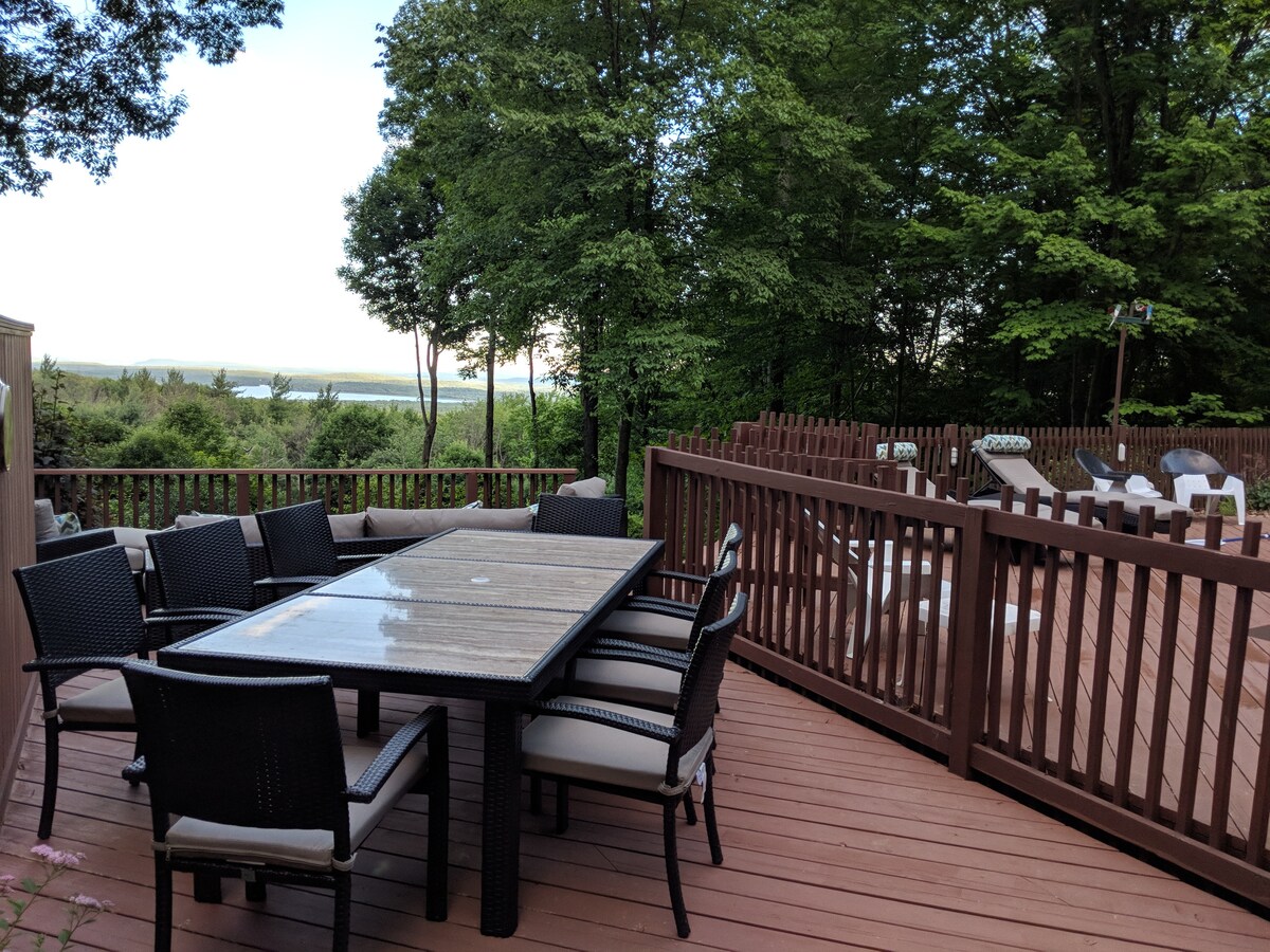 1000 sq ft. cottage located on a 7 acre partially wooded property in the Catskills. Two bedrooms (one queen, one full), one bath, open floor plan with vaulted ceilings and sliding glass doors opening to a deck in the back yard. Cook and eat on the deck with both gas and charcoal grills, plus large dining table with umbrella. Fire pit outside and wood burning stove inside for extra warmth and ambience. Equipped with a backup generator. Dogs considered, just ask.