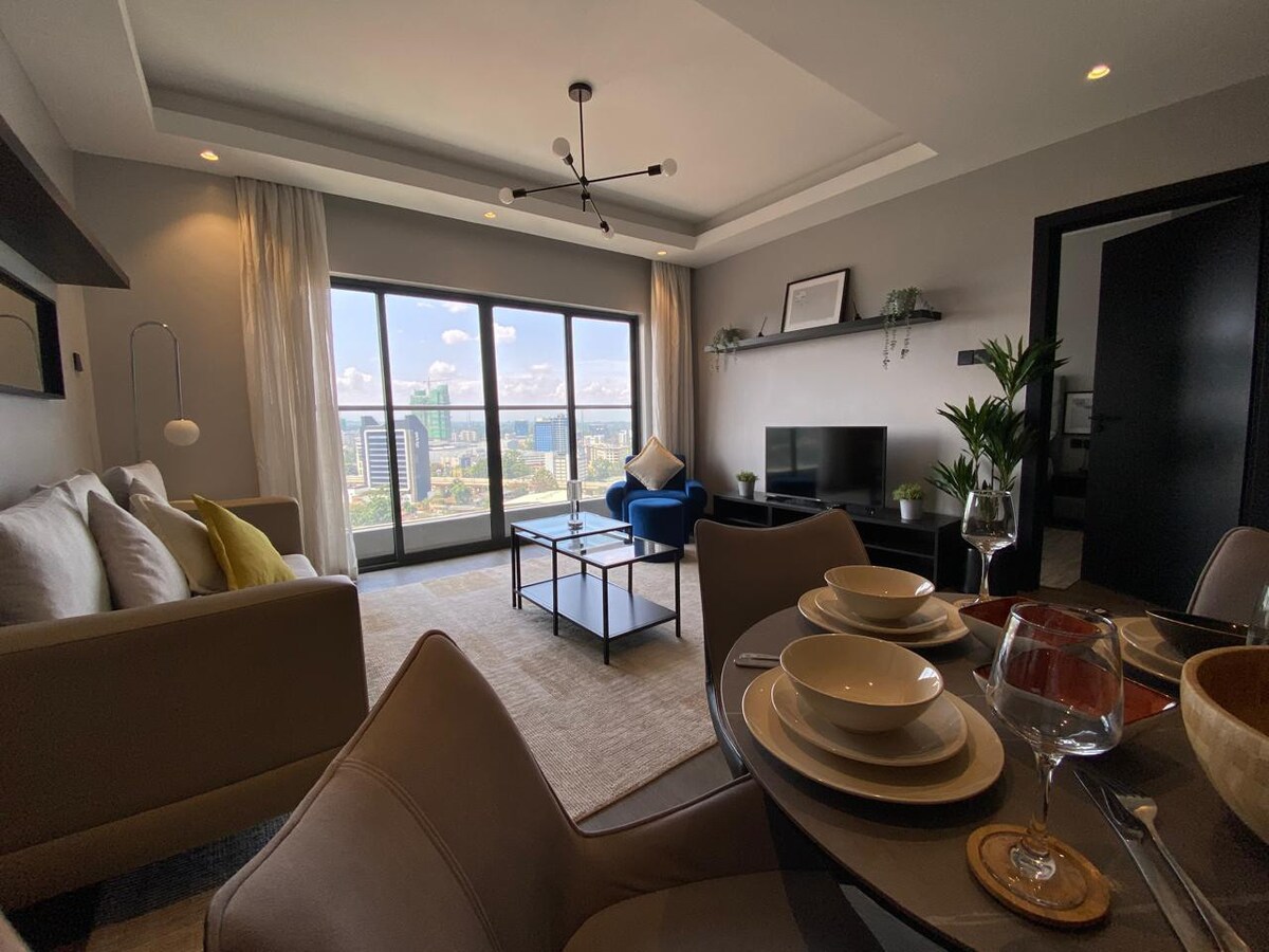 Welcome to SkyNest, perched on the 15th floor in the heart of Westlands, Nairobi. This stylish apartment offers modern luxury and breathtaking panoramic skyline city views. Discover Nairobi at its best with malls, shops, conference centers, and vibrant nightlife just a stroll away. After a day of adventures, return to your urban haven with state-of-the-art amenities. Unwind on your private balcony and soak in the city lights. SkyNest is your experience – where luxury meets location!
