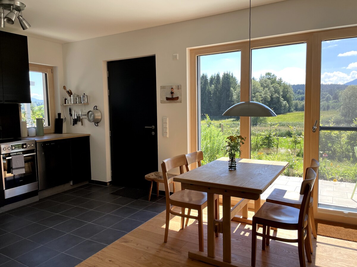 The perfect place for those looking for a modern apartment with natural materials in silence: Low-energy house in the eco-nature garden, deer in front of the window, fantastic views, large south-facing terrace even in winter, floor-to-ceiling windows, fully equipped kitchen for cooking enthusiasts. Lake Soiersee invites you to swim, the Ammergau Alps to hike, bike, forest bathe and cross-country ski. Individual guided tours, cooking classes and menus with edible wild plants can be booked.