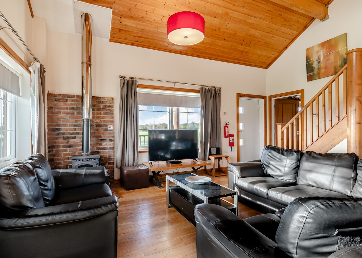 This chalet has large rooms even though it only sleeps 2 guests. It has electric central heating so is cozy all year around. It has a built in Bluetooth system and colour changing lights. This chalet is only 5years old. bi-fold doors let you bring the outside in. you walk straight out on to a large grassed area. only 5 minutes walk to the all year around dog friendly beach. beds made up for your arrival. Many places of interest for you to enjoy within a few miles of the chalet