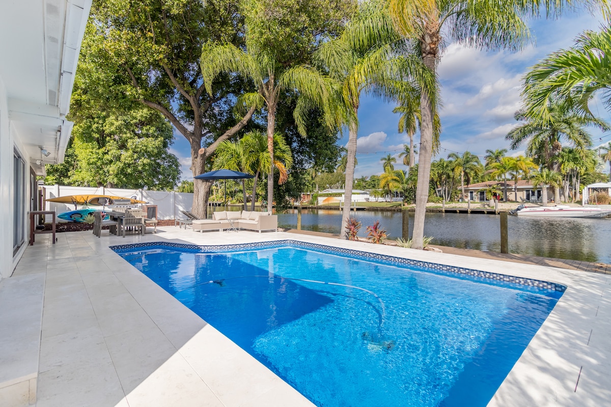 Amazing waterfront house with a private pool in the heart of Wilton Manors. This luxurious home is a 3 BR, 2 BA, with a spacious and designed open living/dining concept. The outside pool area is a private and relaxing place to unwind, it sits on a long 40-ft boat dock, perfect for water crafts, kayaking and and more. Free access to all amenities: wifi, kayaks, washer/dryer, TVs , BBQ, etc... As we are located in a quiet neighborhood, spring breakers are not permitted.