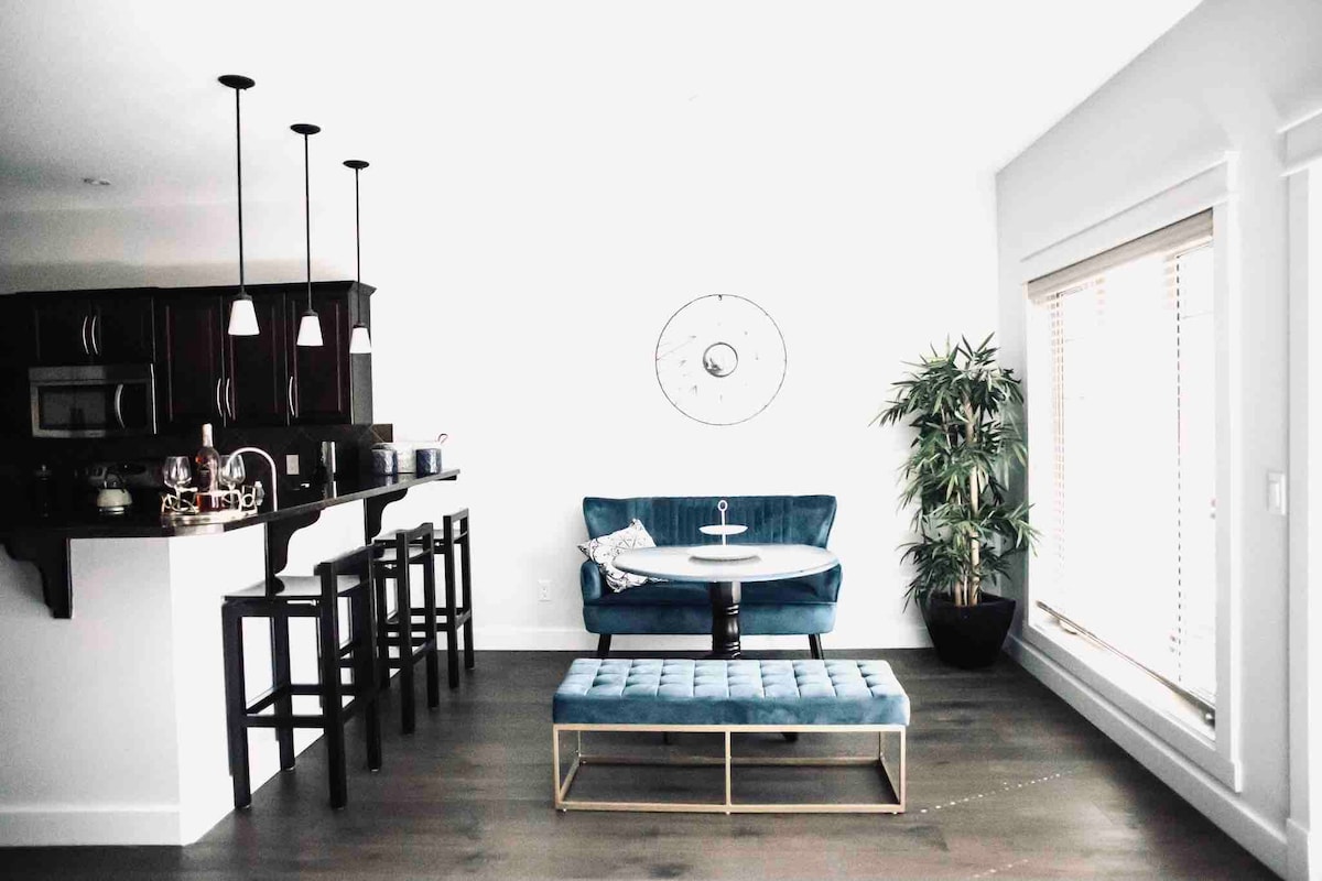 Nestled amongst the trees atop a hill, sits our beloved A-frame chalet. Step inside and take in the unobstructed views of the Rocky Mountains from the floor-to-ceiling windows surrounding the open living space. Decorated with plants & various items we've discovered while travelling, this space is a true labour of love. Sit under the stars (yay, no light pollution!) in the glorious 8-person hot tub... Roast marshmallows around the fire... Grill up a feast on the wrap-around deck's year-round BBQ.