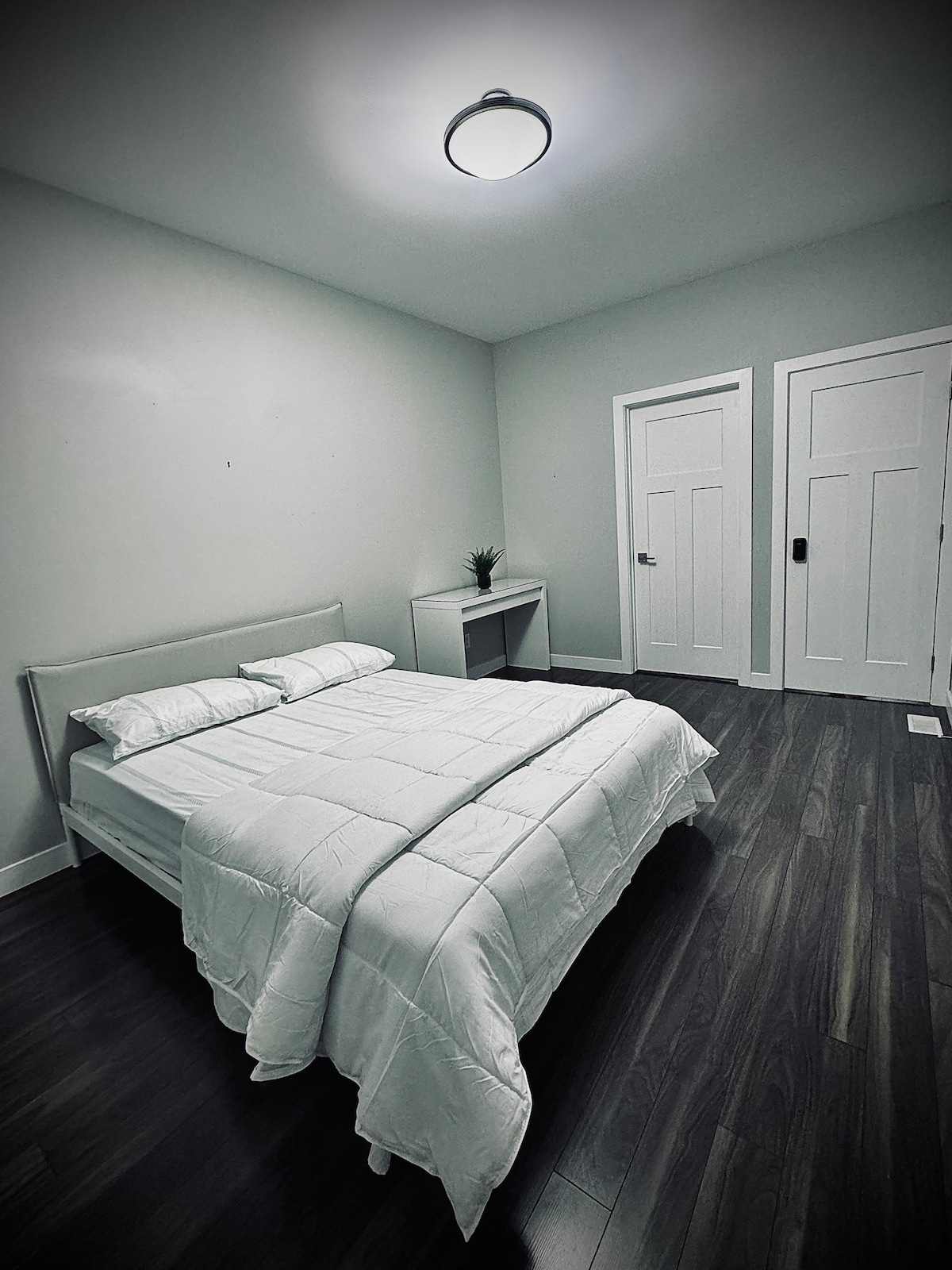 Welcome to our spacious full basement suite! Nestled in a quiet neighborhood, this suite offers a prefect blend of comfort and convenience. With its separate entrance and keypad for check-in, the suite provides privacy and a peaceful atmosphere for your stay. The open-concept design creates a warm and welcoming ambiance, featuring a spacious living area, kitchenette, and a cozy dining space. The tastefully decorated bedroom boasts a plush queen-sized bed, ensuring a restful night's sleep.