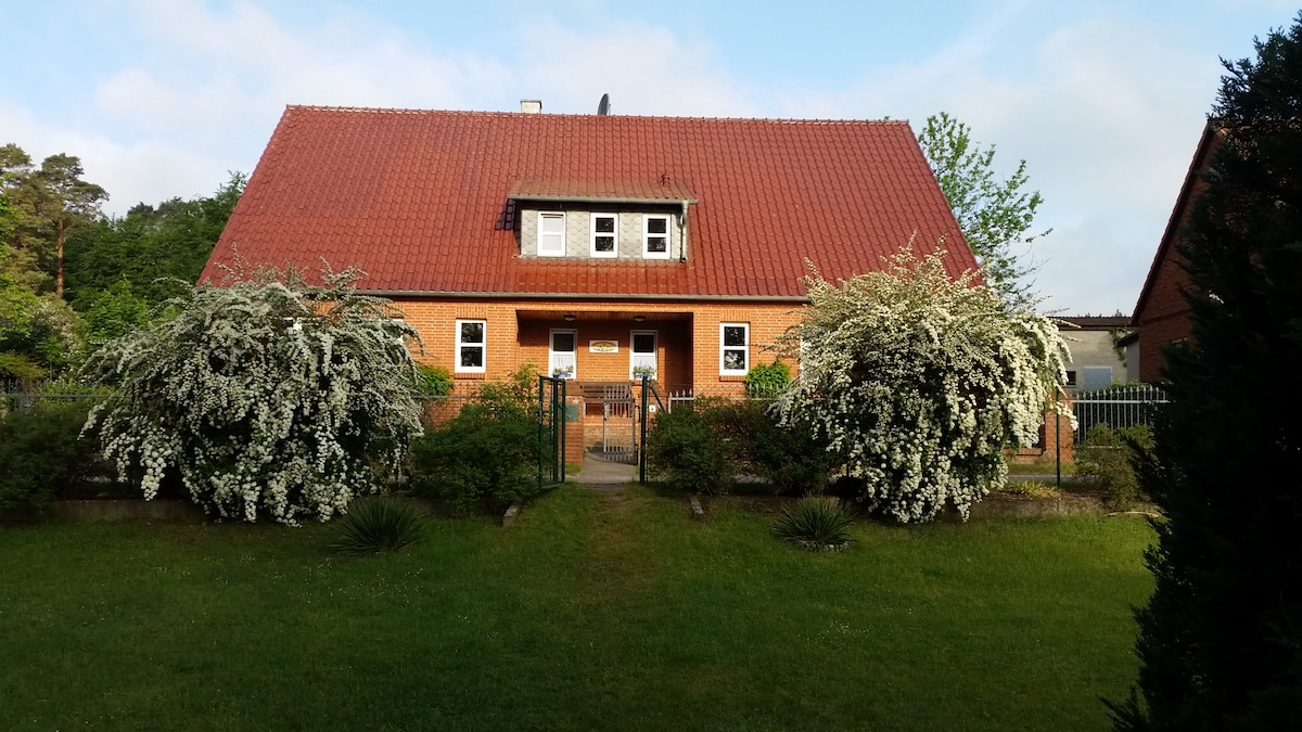 Die gemütliche, stilvoll eingerichtete Ferienwohnung, in idyllischer, ruhiger dörflicher Lage, befindet sich in einem historischen, liebevoll mit Naturmaterialien renovierten Bauernhaus mit schönem weitläufigen Garten. Genießen Sie die Ruhe und die Schönheit der zauberhaften ländlichen Umgebung. Die herbschöne Landschaft Brandenburgs, die wegen ihrer zahlreichen Seen und Wälder ihre Natürlichkeit bewahren konnte, lädt zum Radfahren, Wandern, Boot fahren und Schwimmen ein.