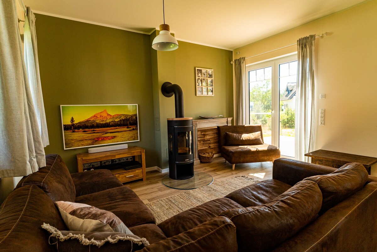 Starting from August 1st, 2023, our luxurious thatched roof house on the island of Usedom invites you to stay. It can accommodate a total of 8 people and is perfect for a vacation with family and friends. Enjoy summer days on the large terrace in the garden and go on an adventure to explore the island. The beautiful fireplace and sauna provide a cozy winter retreat. For workaholics, we have set up a fully equipped office.