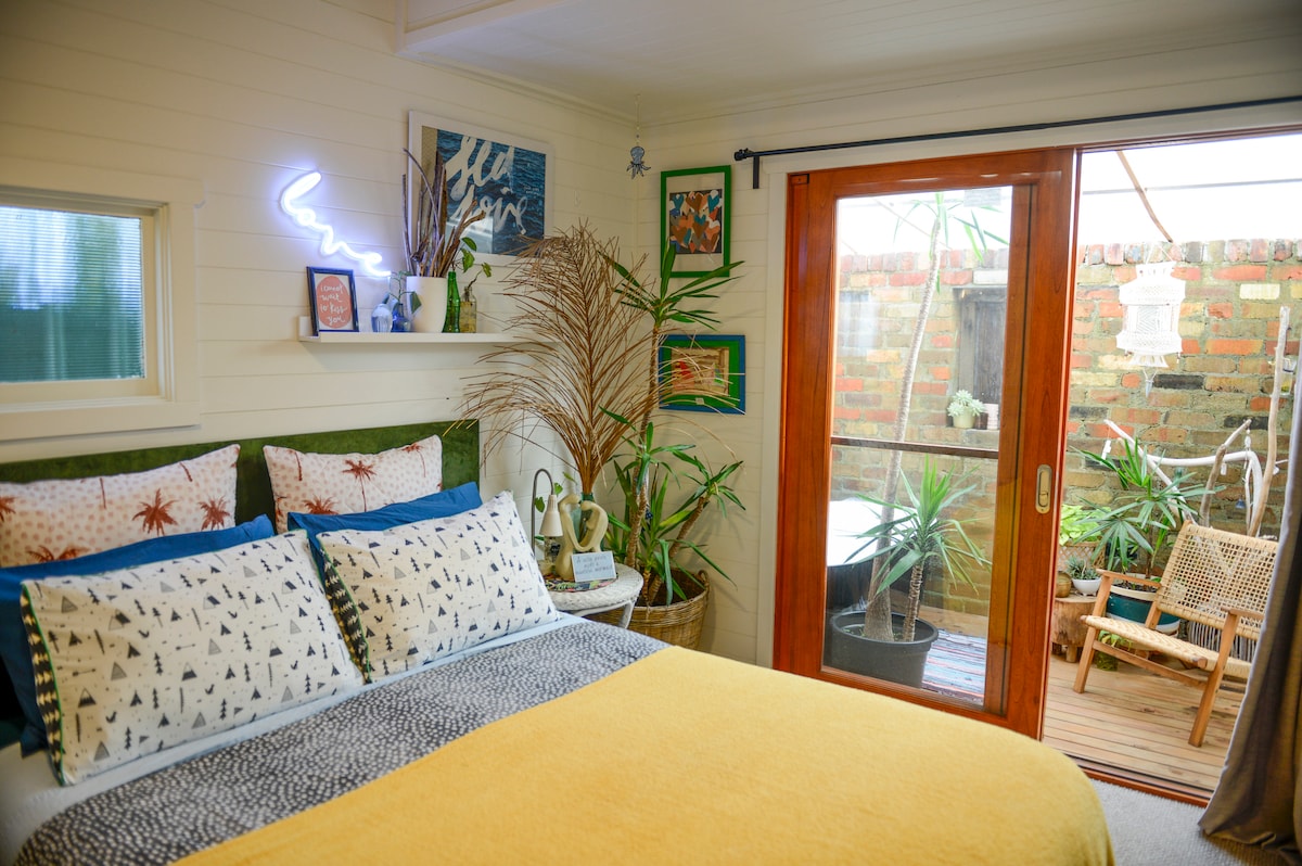 Designed for couples or adults only, experience Sailors Heart Thirroul, Easy walk to shops, restaurants, beautiful beach and ocean fed pool. Sailors Heart is designed as a Hosted at the back of our lush property, your space is Self contained and eco aware **Please note: Bookings of 1-2 guests have complete use of the original one bedroom shack. For 3-4 guests, or if you require a second bedroom, please choose “3 guests” to secure the downstairs quarters, directly below the cottage