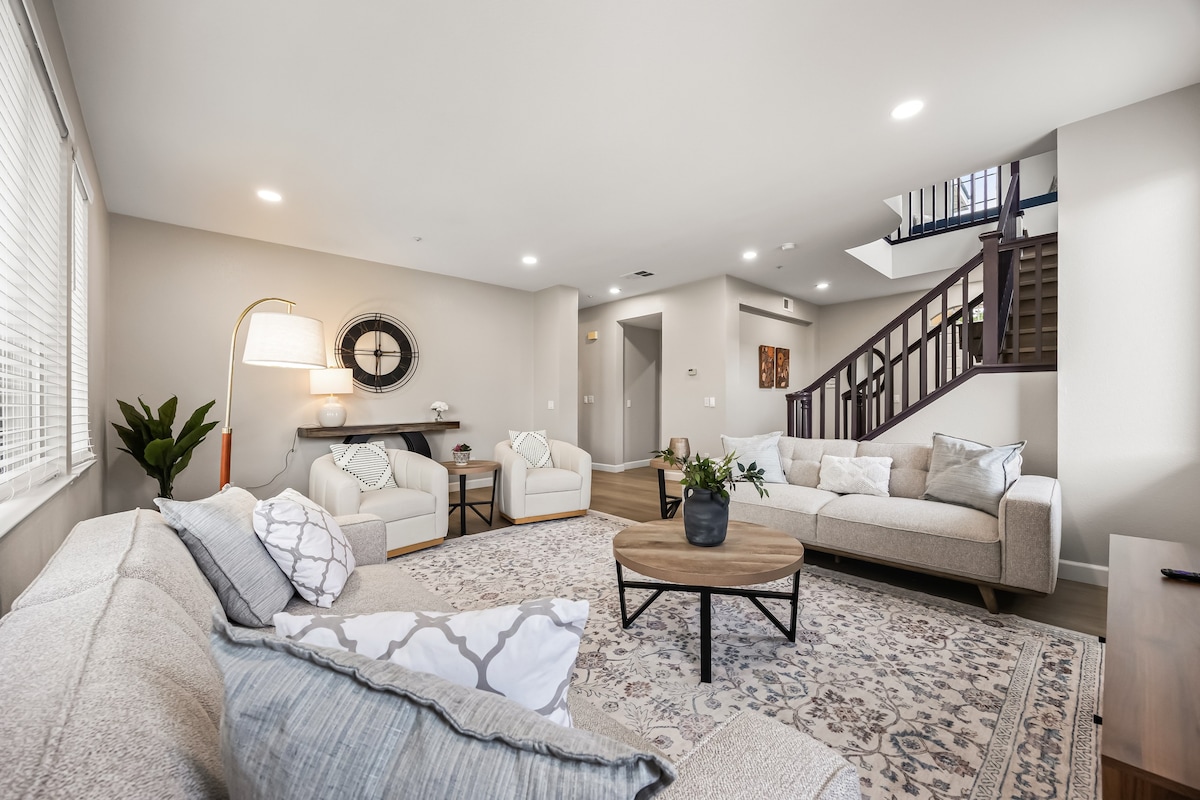 Enjoy your stay at this farmhouse style 2 bed 2 bath condo! Extremely clean and well maintained, this space is conveniently located a few minutes from the downtown area, Central Plaza, and walking distance from Riverside's well known Mt. Rubidoux Hike; a 1-mile trek that gives a stunning view of the entire city. There is a park across the street that kids love which also has a nice walking path. The neighborhood is very quiet and peaceful. Access to Wifi, washer/dryer, 2 car garage, and more!