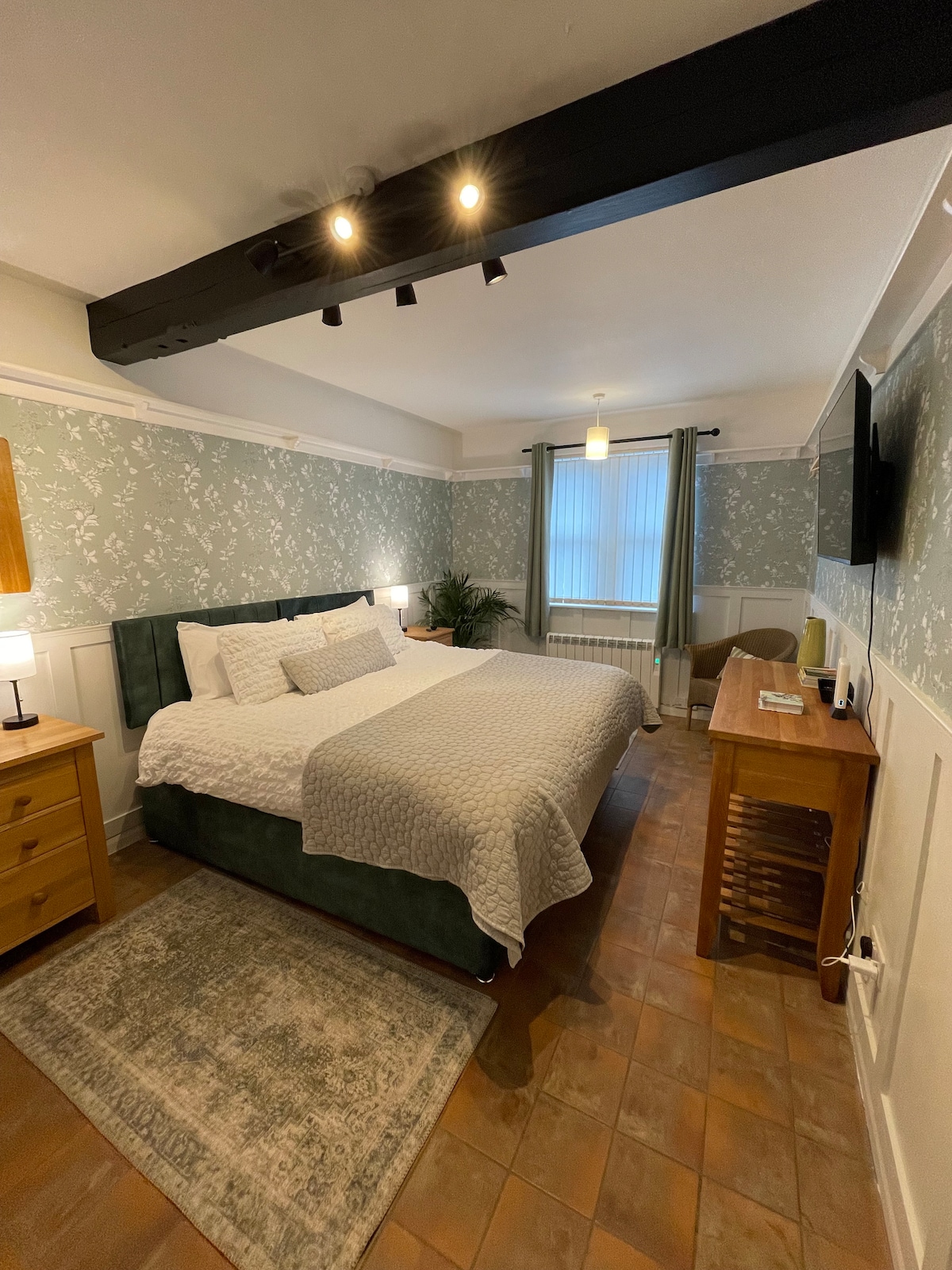 Kick off your walking boots, wash down your bike or just park up the car, this freshly converted kennels is the place to relax for a few days. Peaceful and away from it all but close enough to explore the beauty of the Peak District and Chatsworth House. Matlock is a couple of miles away with restaurants, shops and amenities. You can start exploring from the door step; we can help with guides, directions and recommendations. The room can be configured as a luxury Super King or twin beds.