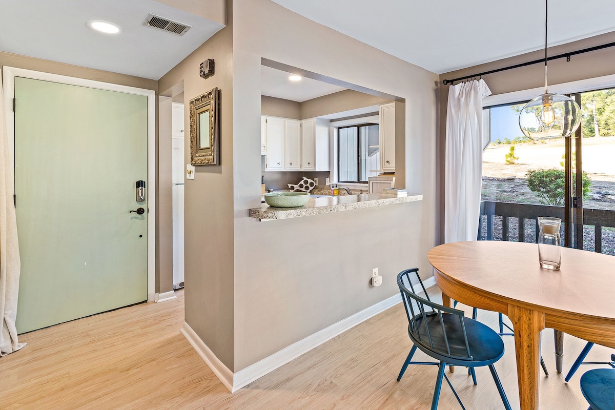 Across from the Harness Track and an easy walk to the main clubhouse at Pinehurst sits our villa on the 2nd hole of the Ellis Maples designed Pinehurst No. 5. Our newly renovated 2nd floor unit has 3 bedrooms, 2 bathrooms and and open floor plan. With seating for 8 and 5 beds, you can bring the whole family comfortably. Cook dinner in the kitchen equipped with new stainless and enjoy a glass of wine out of the cooler. This unit has two porches, and both are great for your morning coffee.