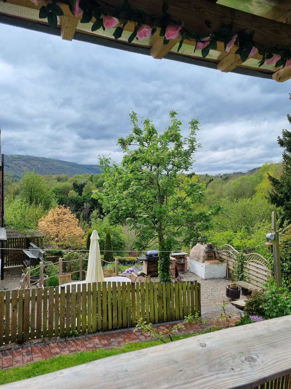 Relax and unwind in beautiful surroundings. Enjoy the many birds, flowers and trees in our garden, and take long walks in the surrounding Welsh countryside, all nestled in an Area of Outstanding Natural Beauty near to the river Dee. Enjoy a relaxing soak in our hot tub whilst taking in the views over the Berwyn Hills and Dee Valley, or take a stroll across the world famous Thomas Telford aqueduct, just a 5 minute walk away! You'll be spoilt for choice for places to eat out locally too!