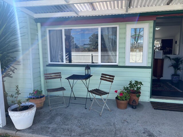 Cosy, self-contained, studio style cottage. Guests are welcome to make full use of all facilities. A large entertaining area with barbeque and fire pit. Set on an acreage on the edge of Warwick with bushland setting. Single carport with plenty of space in our yard for a caravan, trailer or truck. Unfenced, so no pets, sorry. Light breakfast included. We can cater for two, having a queen bed.
