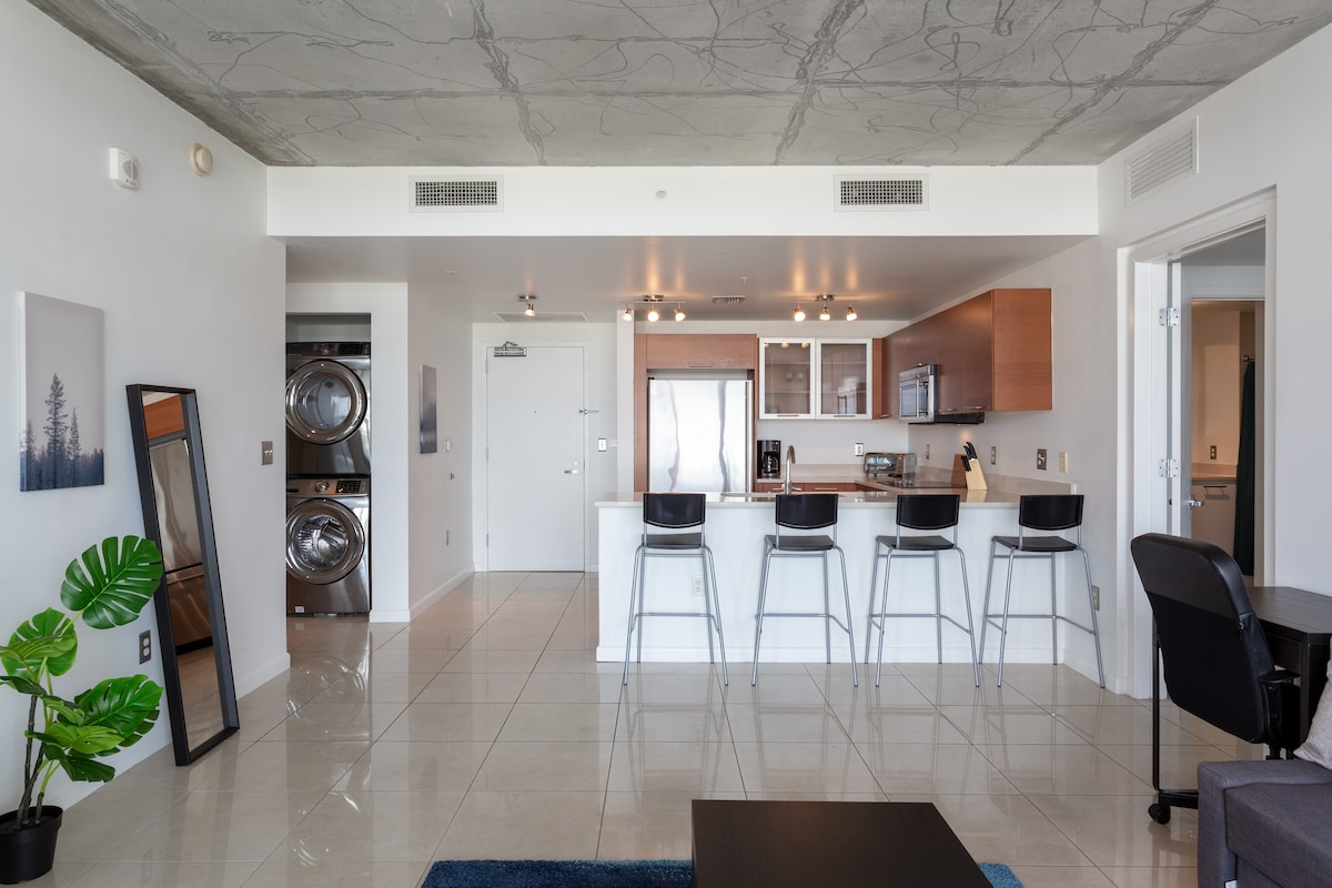 ★ “Best place to stay in Wynwood. Convenient location...walking distance to great restaurants, cafes, night life, etc!” ☞ 1,400 SF apt + 260 SF balcony ☞ Two king bedrooms + queen air mattress ☞ Free parking ☞ Rooftop terrace w/ skyline views ☞ Smart TVs in every room ☞ Fast Wi-Fi + workspace ☞ Nespresso + full kitchen w/ Bosch appliances ☞ Washer + dryer ☞ Floor-to-ceiling windows 2 mins walk → Wynwood Walls 🎨 5 mins → Design District 🛍 12 mins → Downtown 🌆 15 mins → South Beach