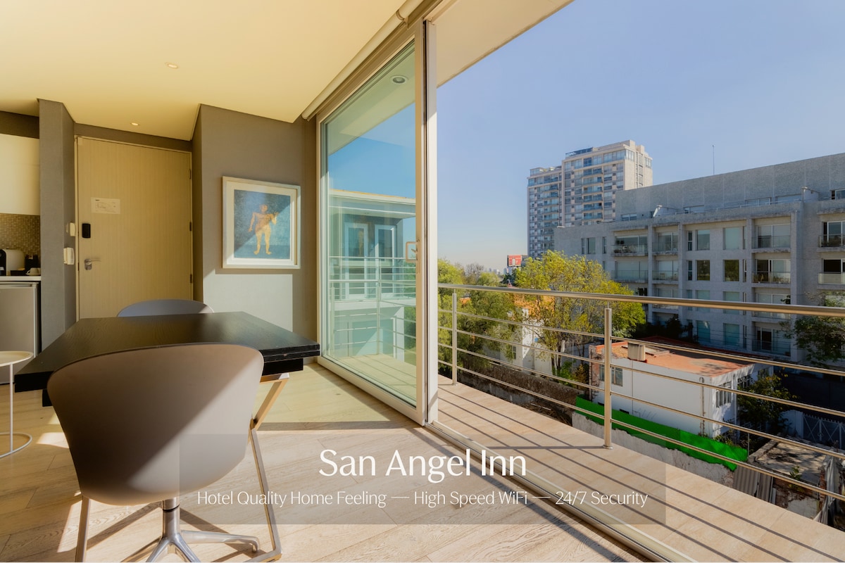 Loft de lujo entre Polanco y Palmas, ideal para una experiencia 5 estrellas. Cuenta con cama King Size, TV 75” con streaming, Wi-Fi de alta velocidad (100 Mbps) y una cocineta. Perfecto para viajeros que buscan confort y estilo. A pasos de tiendas de conveniencia 24h y una amplia variedad de restaurantes. Disfruta de la privacidad y comodidad de una suite premium, con todo lo que necesitas para una estancia inolvidable. ¡Te esperamos! Es perfecto tanto para viajes de negocios como de placer.