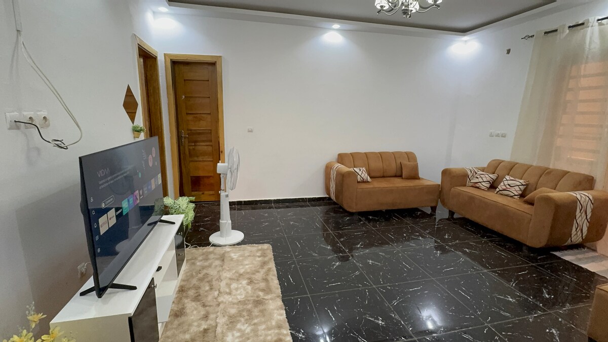 Relax in this elegant and discreet accommodation, located in the Ebenezer district of Morofé, a very quiet area, 5 minutes from downtown Yamoussoukro. American-style studio with 2 rooms, 1 large bedroom and 1 small vestibule, equipped with EVERY COMFORT, water heater, air conditioner, TV, basic Canal+, kettle, fan, storage, dishes for 2 people, parking, supermarket and restaurant with swimming pool across the street. Best value for money possible.