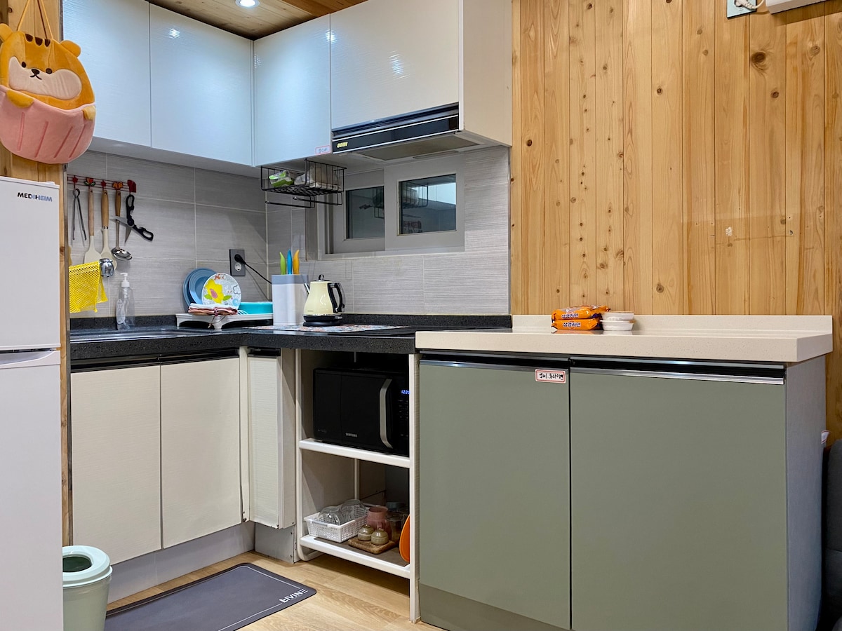 ▣ Window sunset view ▣ Private terrace in the room ▣ Indoor common barbecue area on the 1st floor of the accommodation ▣ Two towels are provided per standard person. ▣ Large shampoo, body wash Fully equipped with ▣ cooking utensils ▣ 5 minutes by car from Yeongjong Station ▣ No additional blankets or pillows provided Hello? This is Park Avenue. Our accommodation is perfect for those who want to have a quiet and comfortable rest. . When you miss rest and need a break, when you miss the sea, this is an accommodation where the scent of the sea and the forest are combined. There is no shortage of natural environment, such as sports facilities (futsal, basketball, foot golf, badminton court) in the 66,000 m2 neighborhood park right behind the accommodation and coastal promenades created everywhere, so you can enjoy a relaxed rest. Parking is available free of charge in front of the accommodation building, and if there is no parking space, you can park on the roadside, but there is no parking enforcement because it is a village property. . The accommodation is equipped with a 50-inch smart TV, refrigerator, drum washing machine, induction, microwave, electric kettle, pot, frying pan, and various tableware, and ceiling air conditioners are installed in each room and living room.