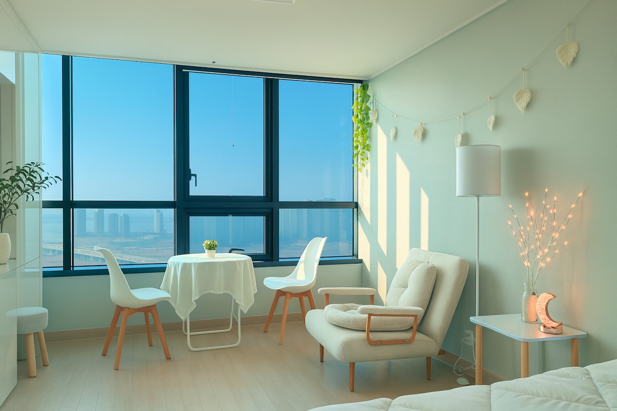 The wide view of the sea of Incheon West Sea, close to Seoul, When you need to rest for a while in a tight daily life Come to play:) It is kept clean. Outdoor terrace overlooking the sea and green park A refreshing ocean view from a floor-to-ceiling window, Cheerful serviced apartment duplex studio home ▪️Incheon Airport 15-20 minutes by car 25-30 minutes by car to major tourist attractions such as ▪️Inspire, Paradise, and Eulwang-ri Beach ▪️Gueup Batter Wharf 2km 5-7 minutes by car Central district of the ▪️commercial district, restaurants, cafes within 5 minutes on foot. Convenience store on the first floor of the building ▪️Netflix ▪️Standard 2 people - max 4 people (if more than 2 people, there is an additional cost) ▪️Hours of use - Check-In: 4pm - Check-out: 11 AM * Early check-in/late check-out requires additional charges and scheduling, so please contact us in advance. No ▪️pets Smoking ▪️indoors is absolutely prohibited ▪️Pork belly barbecue not allowed, meat/fish/shrimp cannot be baked ▪️Parking (1 car free) - Building B1 ~ B4/Parking lot-Accommodation connection (additional cost for more than 2 cars)
