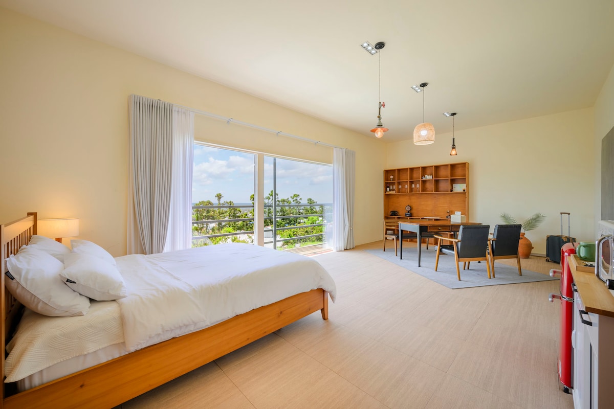 Tucked beneath the majestic Hallasan Mountain, Stay NangNang offers a peaceful retreat surrounded by nature. Enjoy stunning views of a tangerine orchard and cherry blossom-lined paths, with a calming bamboo forest as your backdrop. Wake up to the gentle rustling of bamboo leaves and the melodic songs of Jeju’s birds, experiencing the island’s charm in every season. This private space is perfect for those seeking tranquility, whether for a month-long stay or a family getaway.