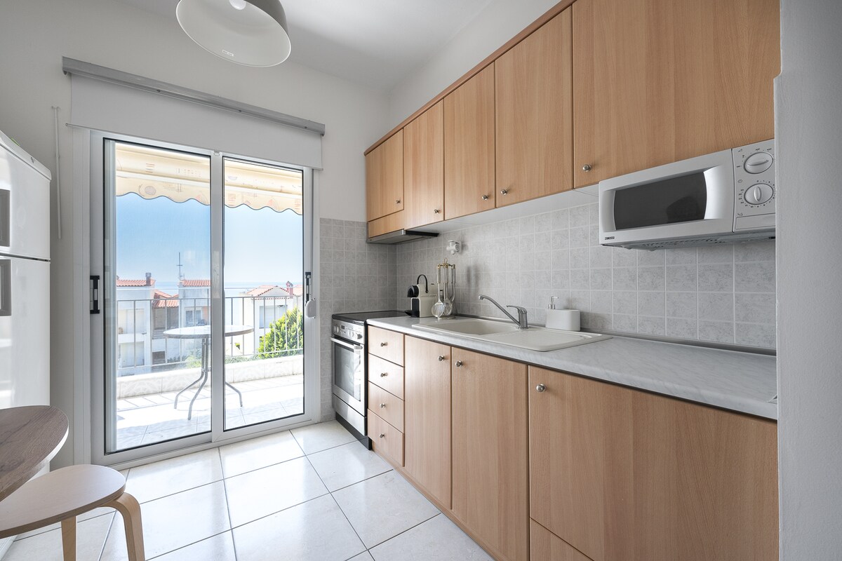 This beautiful two-bedroom apartment in Gerakini, Halkidiki offers stunning views of the swimming pool and surrounding area. With spacious living areas and all the necessary amenities, this apartment is the perfect vacation rental for those seeking peace and relaxation. Situated in a peaceful location near the beach, it is the ideal place to unwind and enjoy the beauty of Halkidiki. Book your stay today and experience the perfect beach vacation in Gerakini.