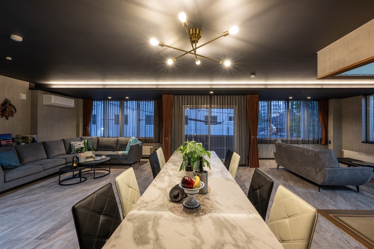 【1】最大人数6名 × 充実の室内環境 小樽市相生町に佇む、落ち着いた雰囲気の一戸建て民泊。歴史ある街並みに溶け込む外観と、シックで洗練された内装が魅力の一棟貸しです。ご家族でのご旅行にぴったりの空間で、まるで小樽に暮らしているような感覚をお楽しみいただけます。 リビングには、落ち着いたトーンのインテリアとふかふかのソファ、テレビをご用意。旅の疲れを癒しながら家族団らんのひとときをお過ごしいただけます。高速Wi-Fiも完備しており、リモートワークやお子さまの動画鑑賞にも対応可能です。 【2】観光に最高の立地 × スタイリッシュ戸建て スタイリッシュな外観の戸建て物件。 南小樽駅から徒歩8分、小樽の人気スポットが徒歩圏内にぎゅっと詰まった便利な立地。 朝は散歩がてら歴史的な街並みを歩き、昼は小樽運河周辺でグルメやショッピングを、夜は静かな住宅街でゆったりとくつろげる、理想的な滞在が叶います。 1日たっぷり観光を楽しんだあとは、ゆったりとくつろげる一軒家へ。静かな住宅街にありながら、主要な観光地へのアクセスも抜群の好立地です。