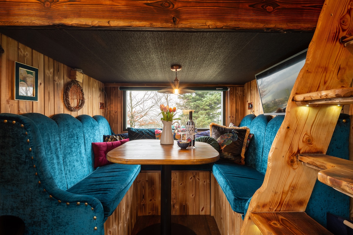Absolutely ‘one of a kind’ tiny house! Brand new and custom-made, the Peacock is tucked away above the beautiful Saddleworth hills with jaw-dropping views across the valley. A luxury small space with every amenity you’ll need, the Peacock has a mezzanine king bed, plush comfortable dining/lounging area and kitchen complete with hob/extractor/dishwasher/microwave/wine chiller. Full shower room/toilet/sink with shaving point. The most ‘extra’ shepherd’s hut you’ve ever stayed at!