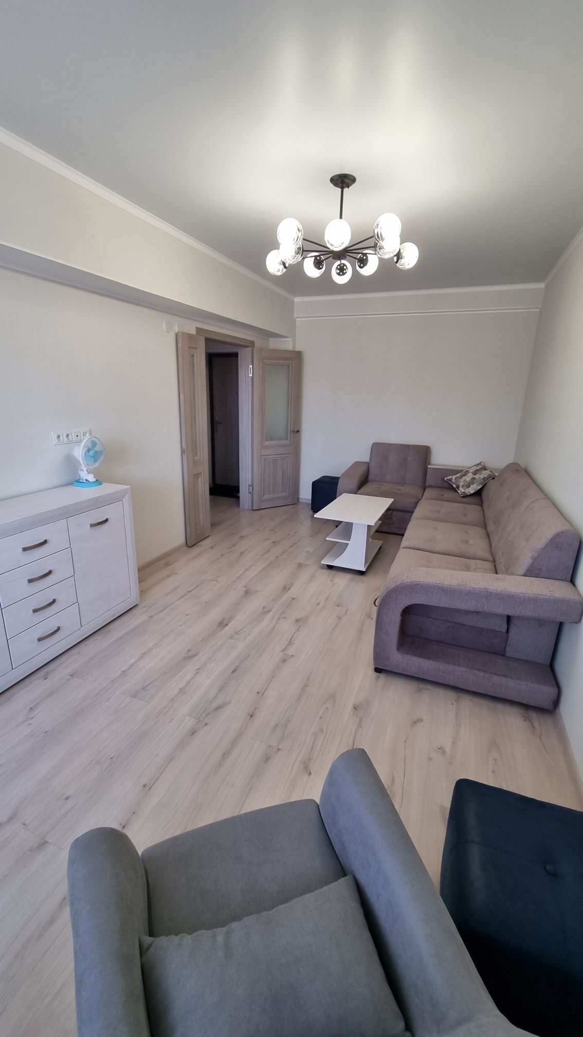 A nice, clean, new construction. The apartment is on the second floor, there is an elevator, area with guard and camera. The apartment is furnished with a modern kitchen, fridge, freezer, microwave, oven/stove (only one electric plate works as gas is not connected), bathroom with washing machine. Living room with sofa bed for two people, armchair, seat pouffes and sideboard, wardrobe with storage. 15-minute trip from the city, easily accessible to nearby public transport and supermarket, pharmacy, restaurants, etc.