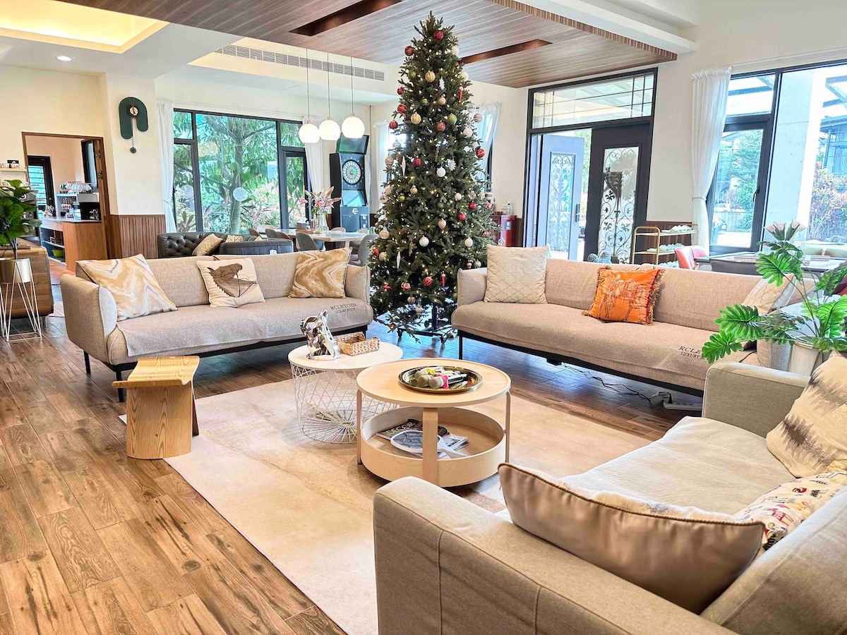 Features Warm and rustic warm-toned cement work, no paint touch Handmade wooden ceilings, floors, wooden tables, wooden doors . Bath. Bathing pool for 2-3 people Courtyard with cypress wood hot water foot bath Equipped with two hot water systems for shower and bath Aesop Series Shampoo Dyson hair dryer . Comfortable. Full house voice control (Apple HomeKit smart home control system) Touch panel switch 110" 4K Laser Projector TV Dolby Stereo with Dual HomePod Output Switch Game Console (Six Joysticks) Equipped with automated air cleaning, humidity and lighting systems After booking, the system will automatically send an access code, and you can go out without an access card Tablet with full house control system * If you want to experience controlling the entire house with your phone, you can apply to us, and we will give you permission to control all the equipment in the house through your phone during your stay, including turning on the air conditioner, dehumidifier, and lights in advance... (iOS system only) . Sleep. Bedding is a sesame tofu mattress from the Sleep Tofu series Four sleeping tofu pillows per bed (Latex * 2, Memory Pillow * 2) All Cotton Bedding