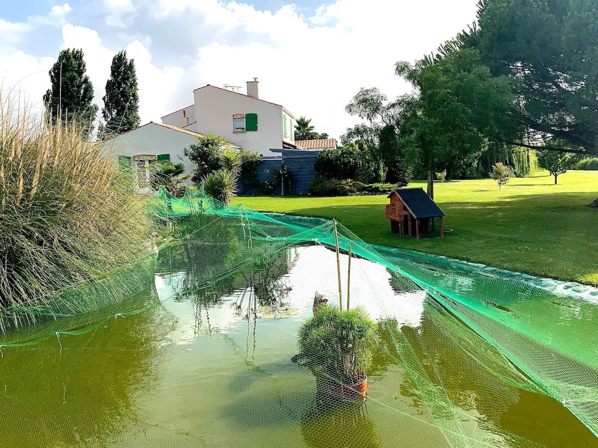Quiet house on a wooded plot of 1379 m2 with a 10x5 unheated swimming pool and with a temperature of 30°C in summer and a 4-person Jacuzzi. The 50 m2 living room is spacious and the kitchen is modern and equipped. A sleeping area includes 2 bedrooms of 12 m2 and a new bathroom of 10 m2. The second sleeping area includes 2 bedrooms of 10 m2 upstairs and a new bathroom of 4 m2 on the ground floor and an office of 20 m2. Check-in ONLY on Saturday in July and August.