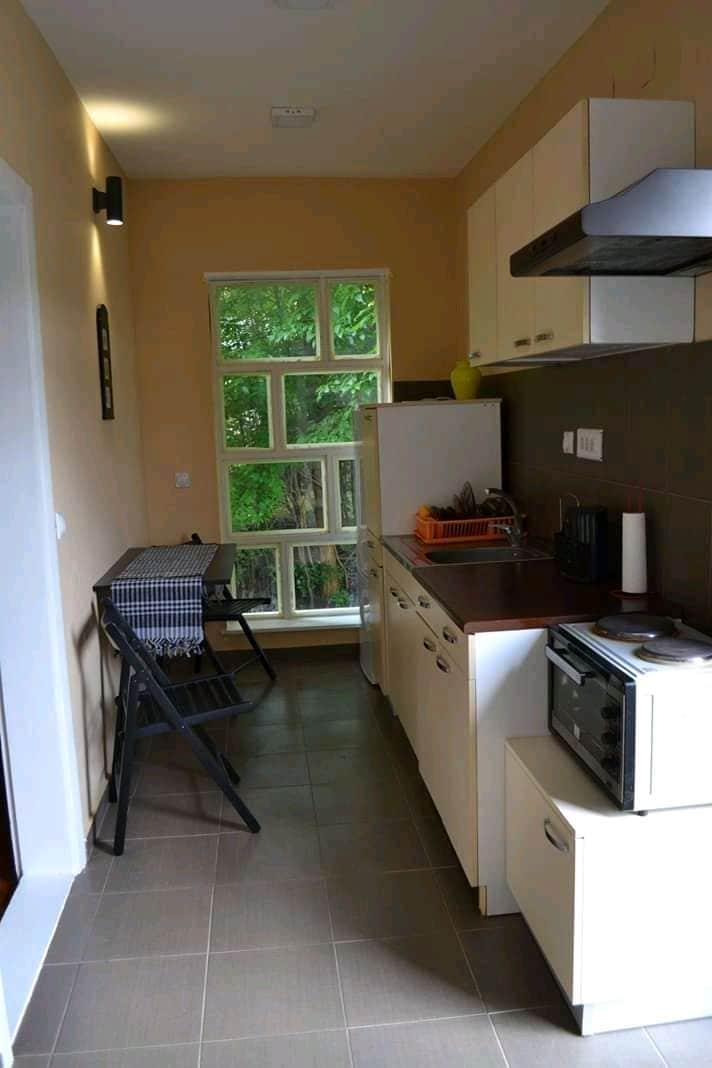 Our place offers a unique experience - a stylish spacious apartment just built with a front garden, a perfect peaceful family, or a single-person vacation. The surrounding is quiet, and green, and the nature is stunning, such as our garden.