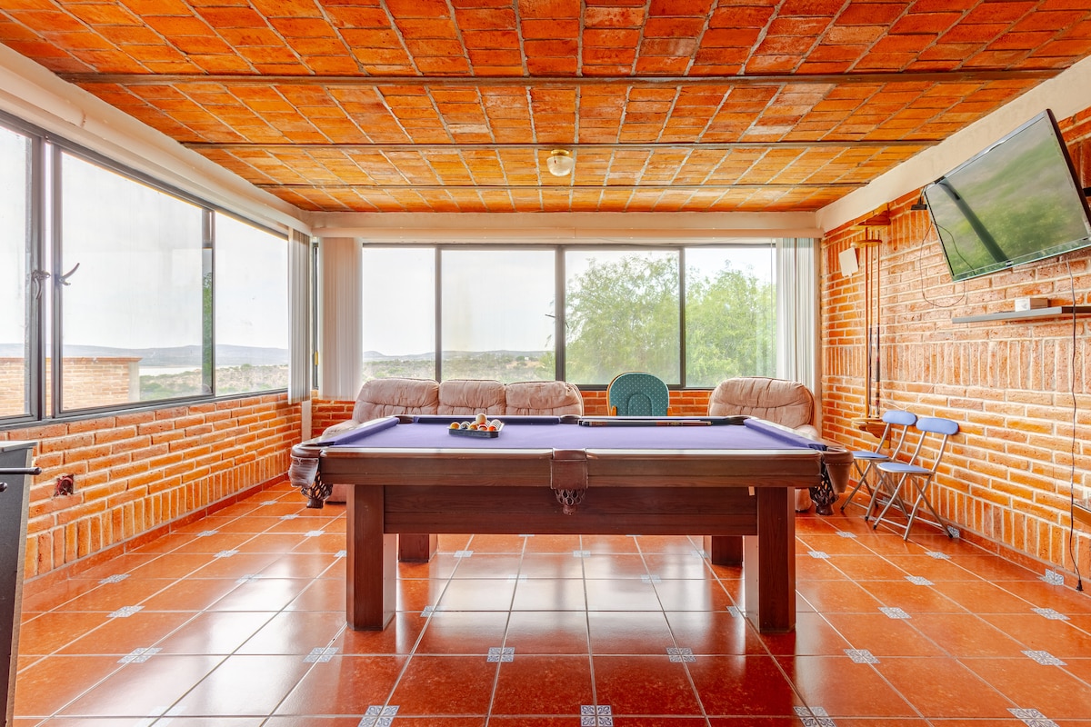 Relax with your family and friends in this peaceful accommodation. Located 2 km from the 3rd ring road, just far enough away, yet close to the city. A place to have fun and relax in a rustic cabin with a private indoor pool heated by solar heaters. There are two alcove-style bedrooms (see photos), a common sleeping area, and a small but pleasant garden. Climb a small hill to enjoy views of El Cerro del Muerto and the city of Aguascalientes.