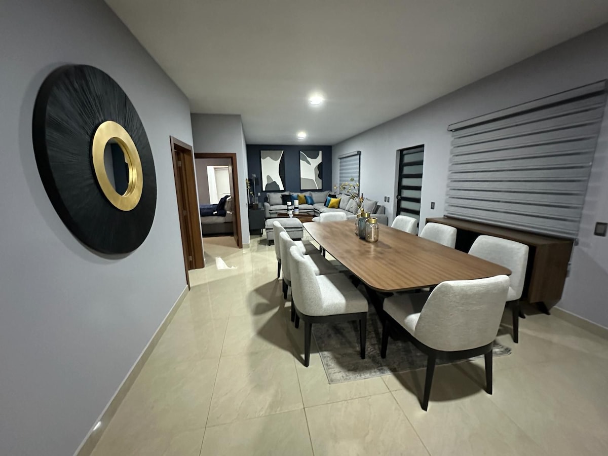 Beautiful country house, 10 minutes from the airport, quiet area, pool with warm water, incredible giant screen of 3x2 meters. In the pool area, solar heaters, and gas boiler for the cold season, the water temperature will be 30 degrees, if you require more temperature there is an extra cost for the gas, luxury amenities Each room has a TV and a 70-inch TV on the terrace, two of them with cable TV, it has (ping pong, billiards, foosball) 4 parking spaces
