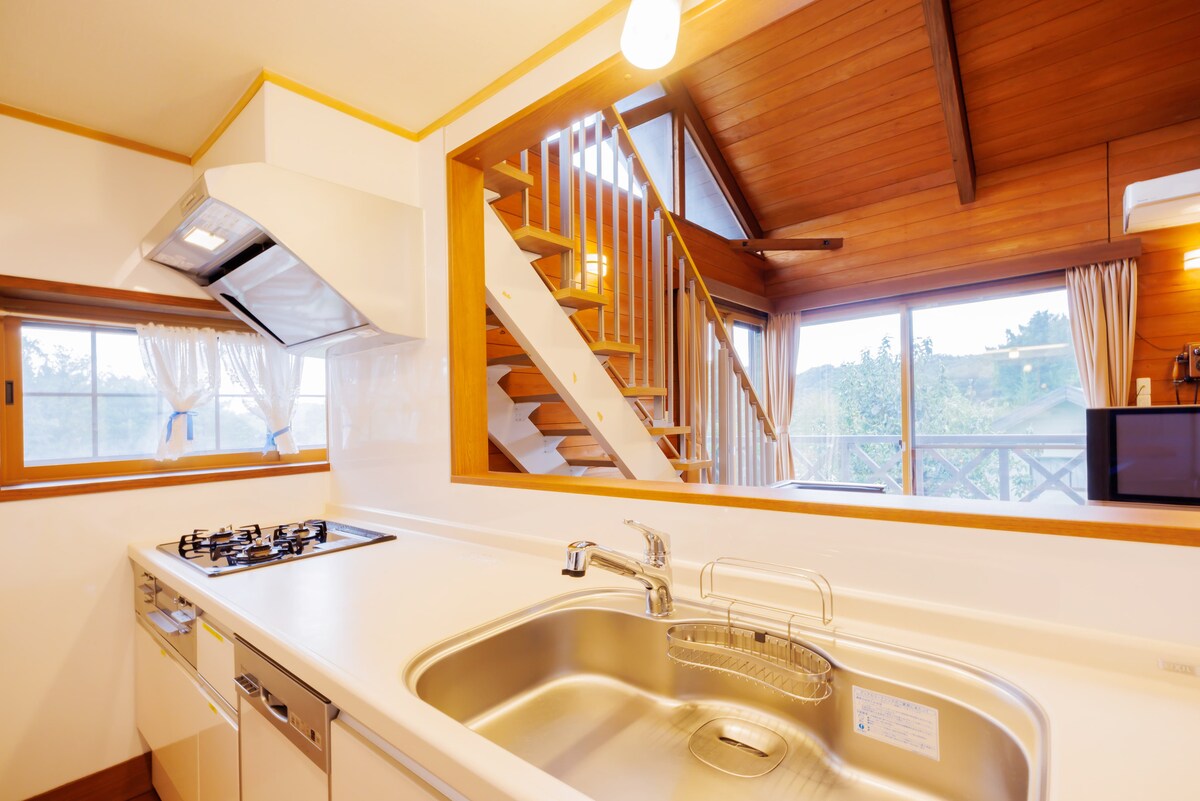 Troll's House on a Quiet Hill 〰〰〰〰〰〰 From the spacious windows of the living room, the blue sky, mountains, and natural scenery spread out, and the chirping of birds will soothe your heart. And at night, why not look at the starry sky that stretches out in the distance? 🐦 Wild birds may come to the birdhouse that you can see from the window. 〰〰〰〰〰〰 -- Includes a 1,000 yen voucher for breakfast, lunch, and dinner at Sakai Coffee and nearby restaurants (1 voucher per person per night). -- In winter, enjoy a luxurious time relaxing on the sofa by the wood stove while looking at the nature outside. Open from December to March. -- The interior is decorated in warm colors, and the warmth of the wood and the soft Nordic colors create a harmonious and comfortable space. The stylish interior chosen by the owner to match the four seasons welcomes you. -- Baby chairs and children's tableware are also available. Have a great time with your family and friends. -- Free wifi is available in the entire rental villa. We provide a comfortable remote work environment. ★ If you have any questions about your stay, please don't hesitate to ask :)