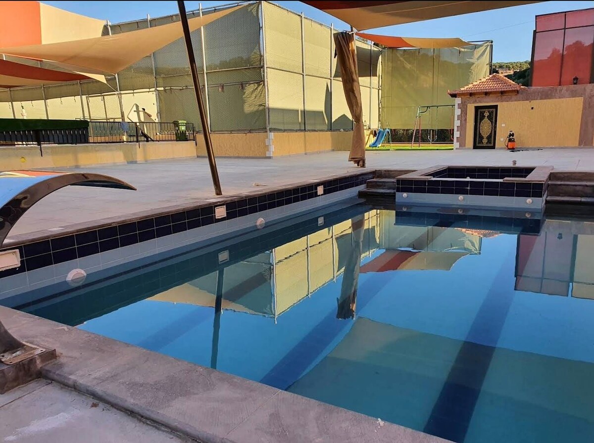 ✨ المرافق : بركه سباحه للكبار والاطفال ( 6*12 ) من عمق 70 سم الى عمق 1.80 🏊♀️ 🤽 ✨ جميع الغرف مطلها اطلاله خلابه 🌄 ✨صالات واسعه مع واجهات زجاجيه ✨ ثلاث غرف نوم ماستر بمواصفات فندقية🛌 ✨ حمامين داخلي🚽🧻شور خارجي🛁 ✨تكييف كامل❄️☸️ ✨ جميع معدات المطبخ موجوده 🍴🥄 ✨ باربكيو وصاجية وما نسينا الزرب 🍖🥓 ✨ خصوصية كامله مع حراسه 24 ساعة ⛔ ✨ نظام صوتي بجودة عالية للموسيقى🎼🎸 ✨طاوله تنس 🏸وطاوله بيبي فوت ⚽️ ✨ كراج ✨انترنت Wifi 📱💻 🏖قعدات خارجية و مظلات و بارغولا 🌴منطقة خضراء مزروعةبالاشجار