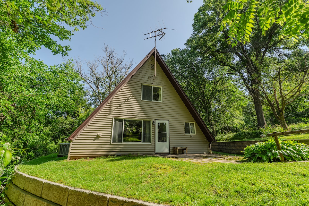 Ready for a vacation! Enjoy the beautiful serene surroundings of this unique A frame nestled in the woods bordering Pine Lane State Park. After a day of hiking, swimming, kayaking, or fishing, come back and cozy up by the fire pit or relax indoors enjoying your favorite movies on our 55 inch smart TV.
