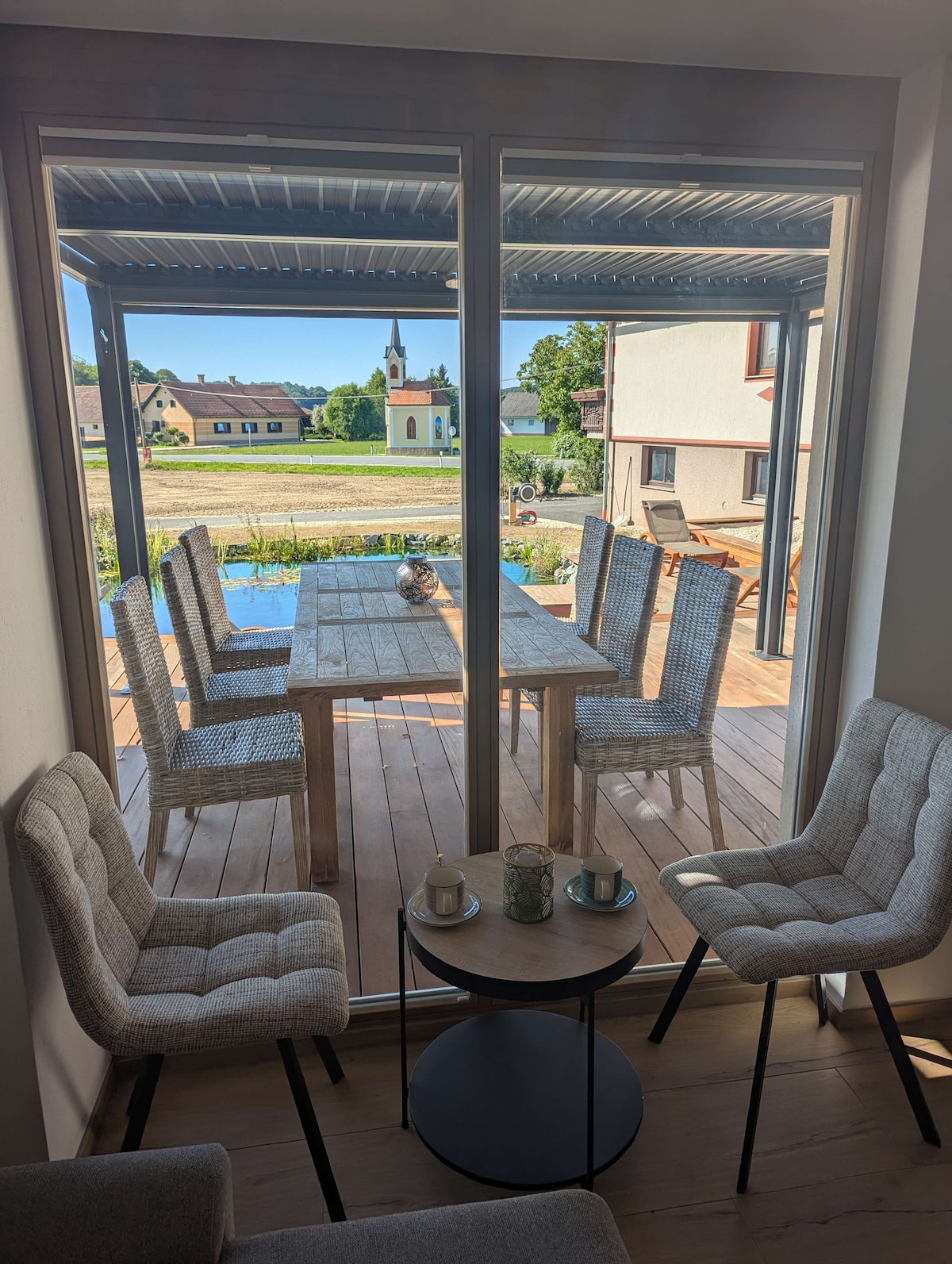 We are delighted to present our charming house to you. It is the perfect retreat for a relaxing getaway or a stopover on your journey – ideal for spending a few days discovering the beautiful wine region of Međimurje in the north of Croatia. Our house impresses with magnificent views of the rolling hills and vineyards. Its peaceful, nature-surrounded location is perfect for recharging your energy and fully enjoying the special atmosphere of this region.