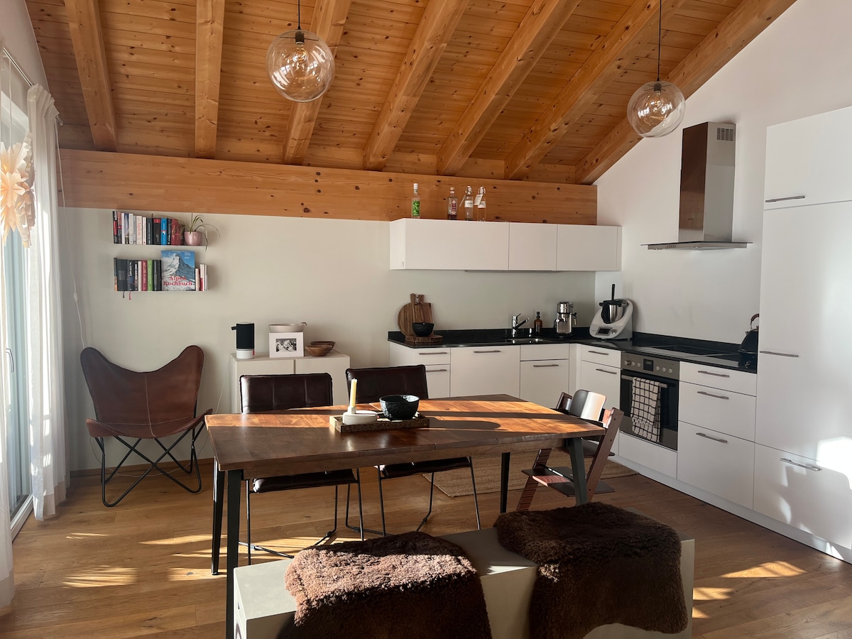In a prime location in the centre of Zermatt and right next to the Sunnegga cable car is this sun-drenched penthouse with a breathtaking view of the village and the Matterhorn. The penthouse has every comfort and has been finished with great attention to detail. There are 3 bedrooms with a total of 6 beds. One bedroom only has a skylight, the bed is accessible via a small ladder and is located directly under the roof. Suitable for children and young people.