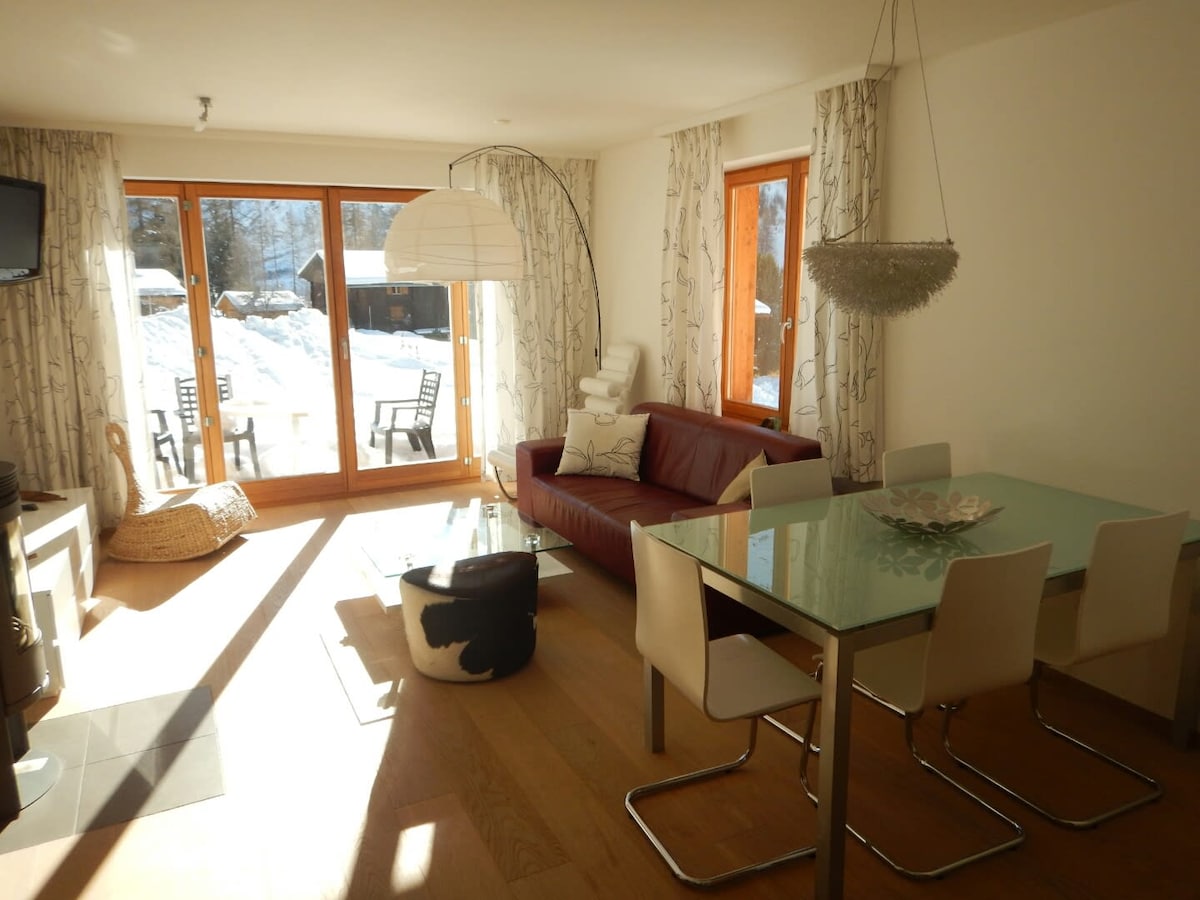 PLEASE READ UNTIL THE END! Neat apartment, completely renovated, well equipped, lots of charm, large balcony. Tranquility + 180° open view. No opposite. BUS stop „Carovilla“ at the gate (@ bus station „Carovilla“). Parking 50m away. FINAL CLEANING NOT INCLUDED. LINENS /bath towels/tea towels provided FOR EXTRA CHARGE for bed sheets, towels). Self-contained access (key in secure box) WINTER: Ski area with guaranteed snow, doubled by the connection with Zinal.