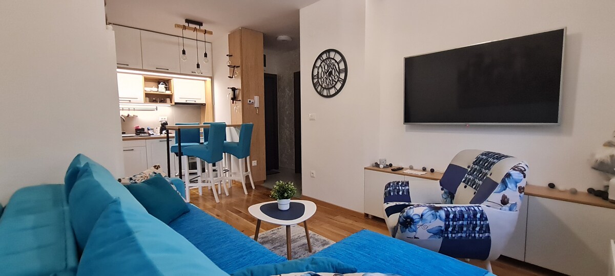 Welcome to our cozy 38m² apartment, just 800m from Zlatibor’s center. Perfect for couples or small families, it features a comfortable bedroom, a stylish living room with a sofa and flat-screen TV, and a fully equipped kitchen. Relax on the private terrace or enjoy the spa with a sauna, Turkish bath, and year-round heated pool. Secure parking, high-speed Wi-Fi, and easy access to nature trails and attractions make this the ideal retreat. Book now for an unforgettable stay!