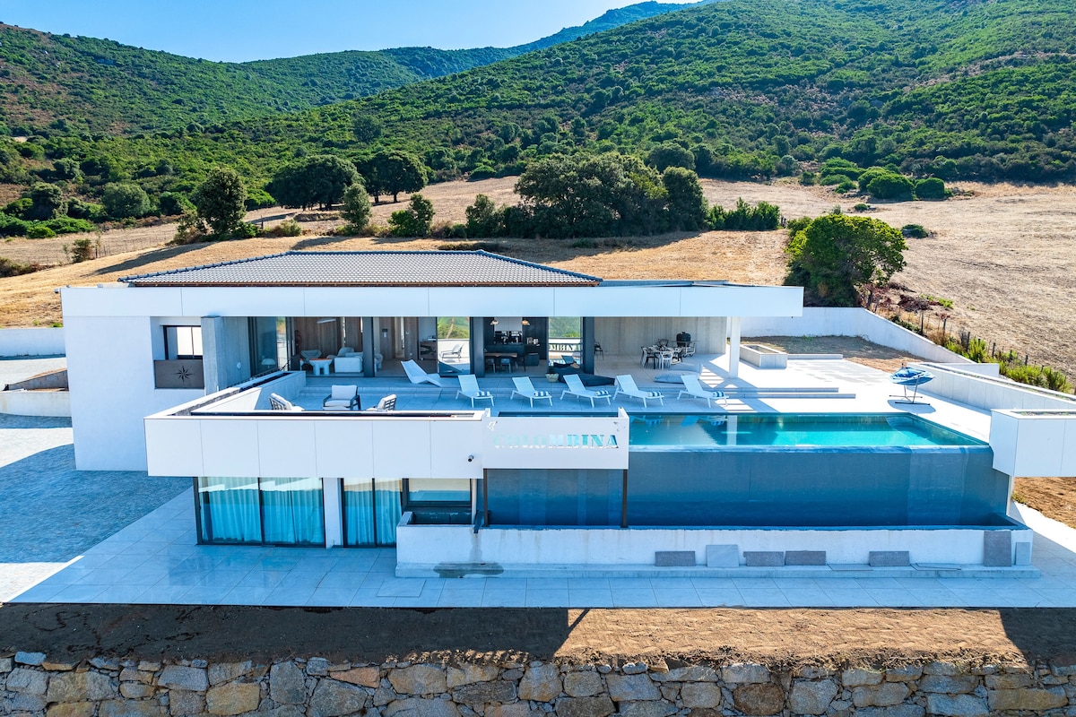 At the foot of the Bastion, this unique villa has stunning views of the Gulf of Porto Vecchio. Renovated in 2018, it consists of a living room, dining room, kitchen, laundry room, 4 bedrooms, 3 bathrooms. All rooms are air-conditioned and offer great comfort. Its fully equipped outdoor space will seduce you: secure and heated infinity pool, summer kitchen, outdoor shower, petanque court and air-conditioned gym with sauna.